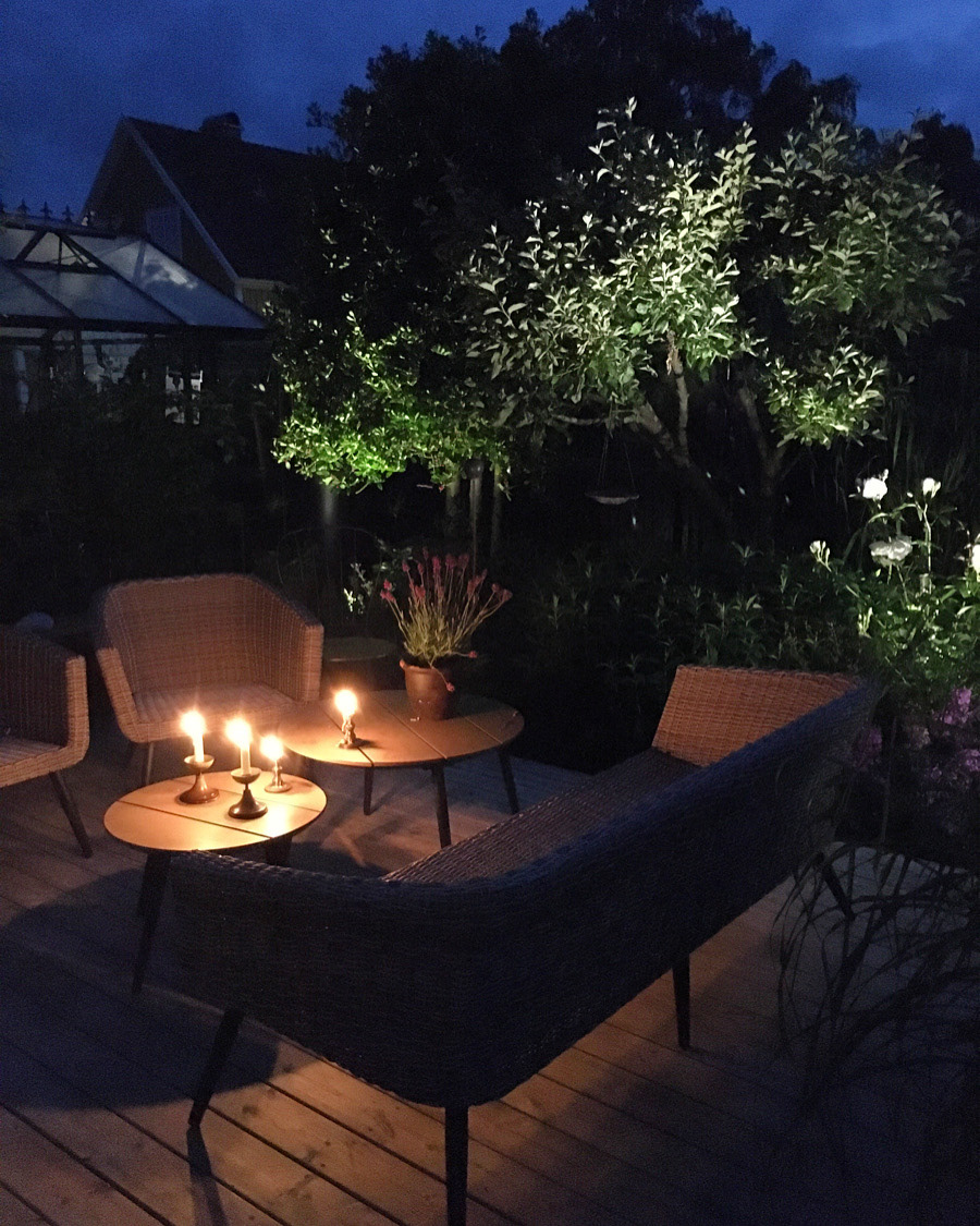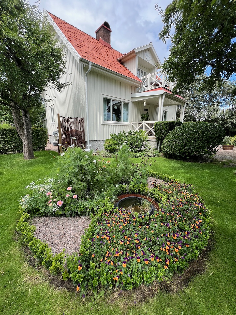 Under de år som vi har utvecklat trädgården har olika "rum" tagit form. Det har inte funnits någon designplan, utan rummen har vuxit fram allt eftersom behoven uppstått. Vi ser trädgården som en målarduk för kreativitet, en förlängning av vardagsrummet och framför allt en plats för återhämtning.